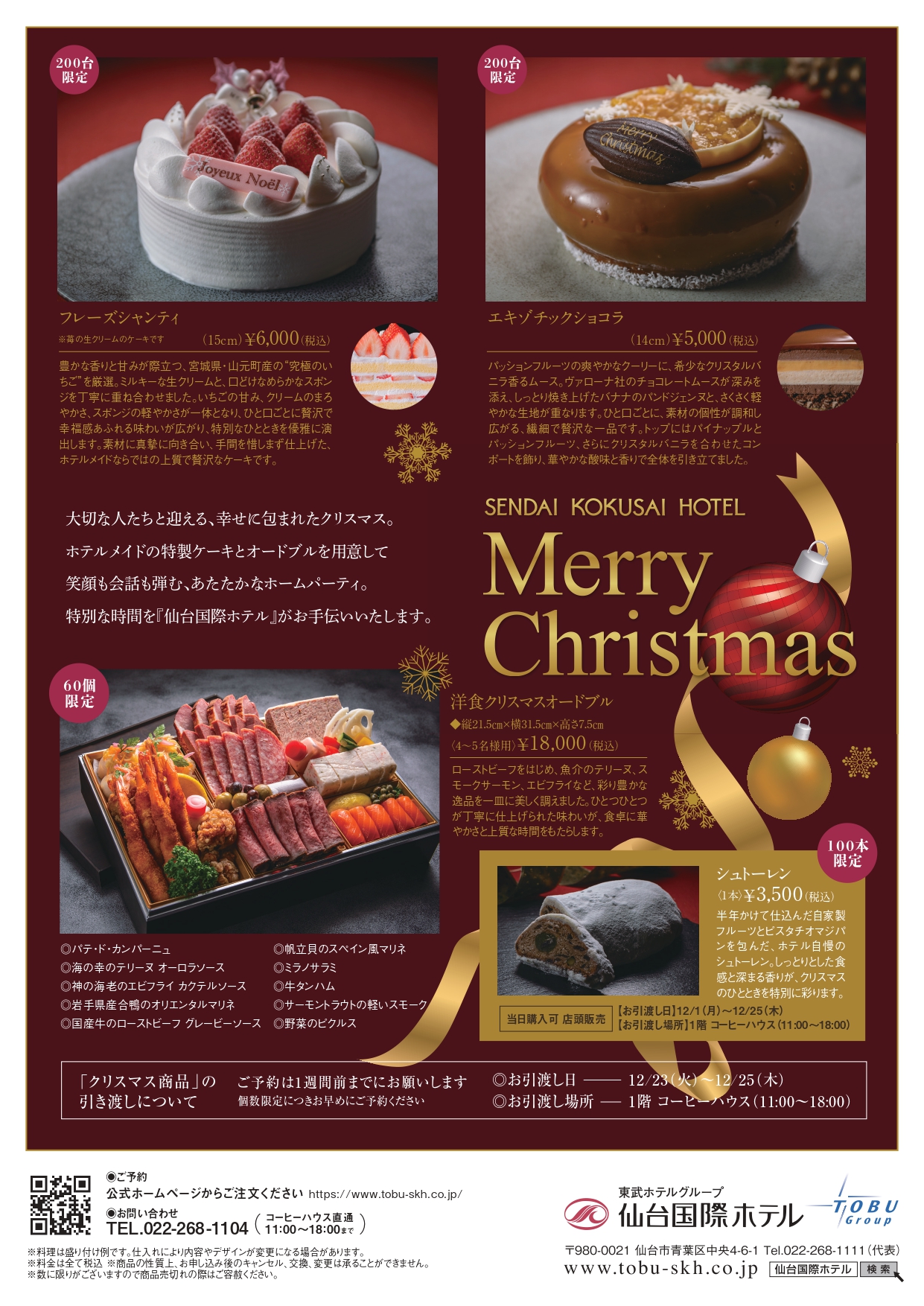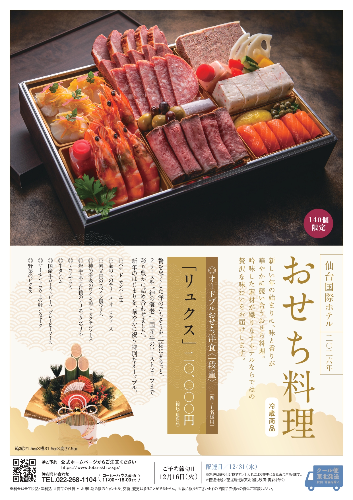 仙台国際ホテルの美味しいお料理とケーキで贅沢な年末年始をお楽しみください。