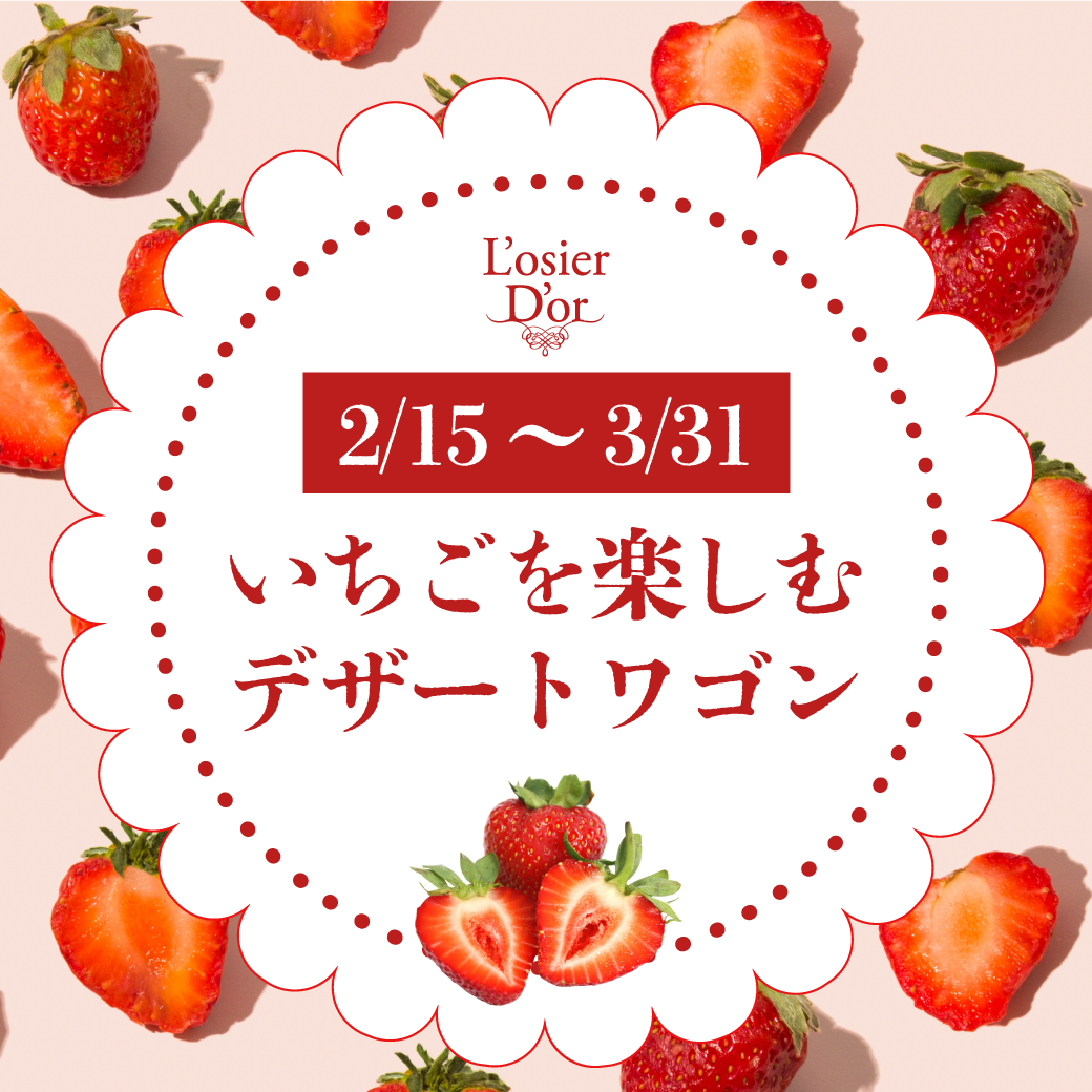5階レストラン「ロジェドール」のお楽しみ、ランチコース”デザートワゴン”が、2月15日から3月末まで、宮城県産いちごのスイーツを取り揃えて新登場!