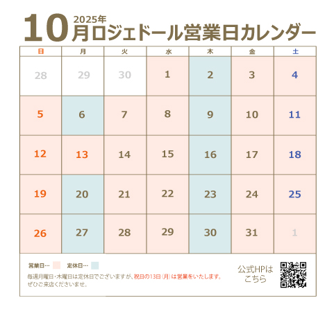 【〈祝日も営業!〉ロジェドール10月営業日のお知らせ】