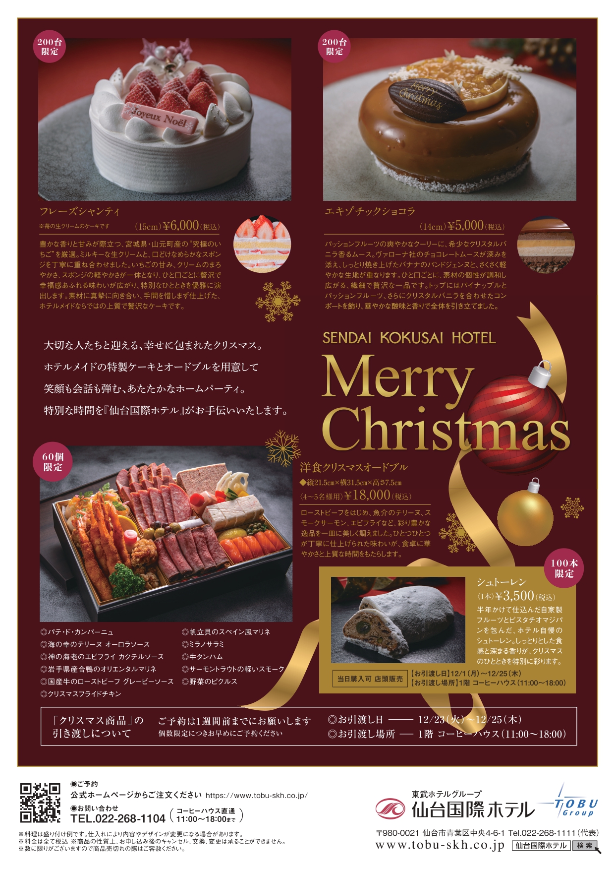 仙台国際ホテルの美味しいお料理とケーキで贅沢な年末年始をお楽しみください。